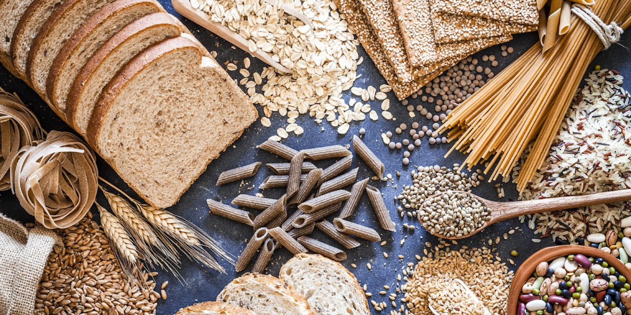 Complex carbohydrates are digested slower and keep more steady blood sugar and energy levels. They also contain fiber which helps benefit gut health and keep cholesterol levels regulated. Unrefined whole grains keep many of the nutrients and fiber, which also helps keep you feeling more satisfied. So, focus on sources of complex carbohydrates such as legumes, whole grains, fruits, and vegetables.