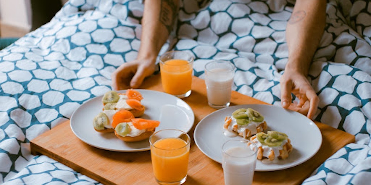 Eating meals that are high-fiber and lower in fats have been suggested to lead to a deeper, more restful sleep (4). Whole-grains such brown rice, whole grain pasta, and whole grain bread can help increase serotonin without a drastic blood sugar peak and dip. Just make sure it's whole grain rather than refined or sugary foods because these are tied with a worse sleep.